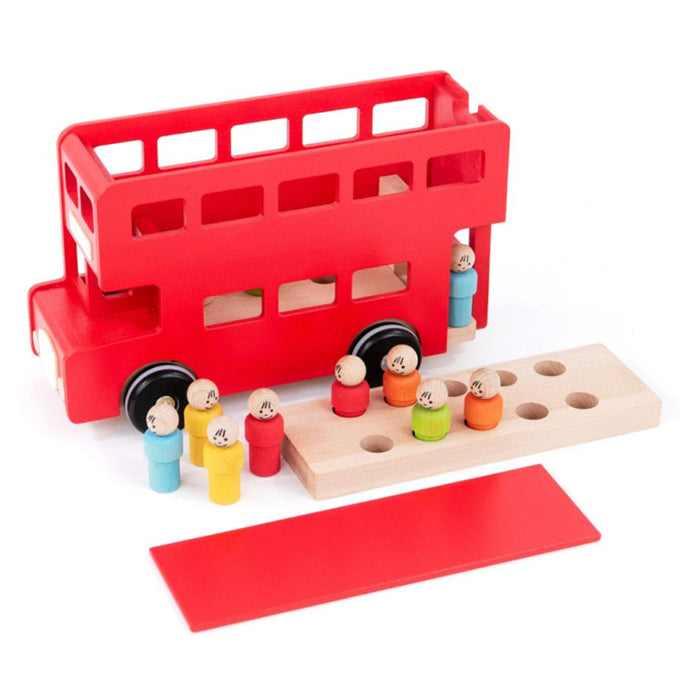 Mooie klassieke rode Londense dubbeldekker bus met chauffeur en 10 passagiers.