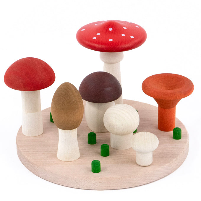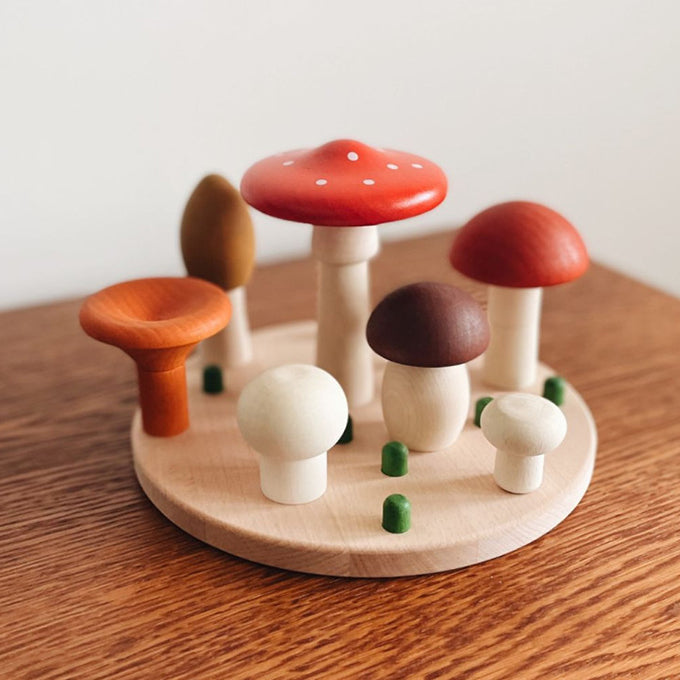 Deze mooie houten paddenstoelenset brengt de magie van het bos in huis. De set bestaat uit zeven stevige paddenstoelen en een houten grondplaat. Door de paddenstoelen op de juiste plek te zetten, oefenen kinderen hun hand-oogcoördinatie en fijne motoriek.