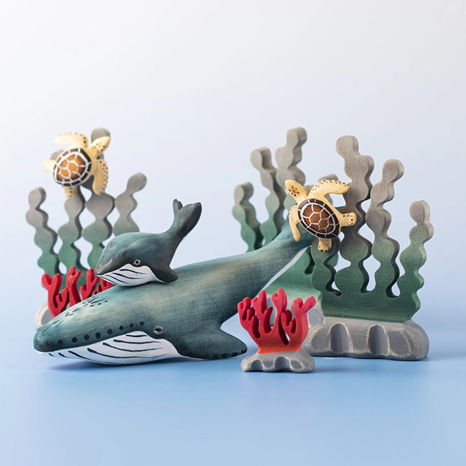 Houten Blauwe Vinvis Set, Bumbu Toys