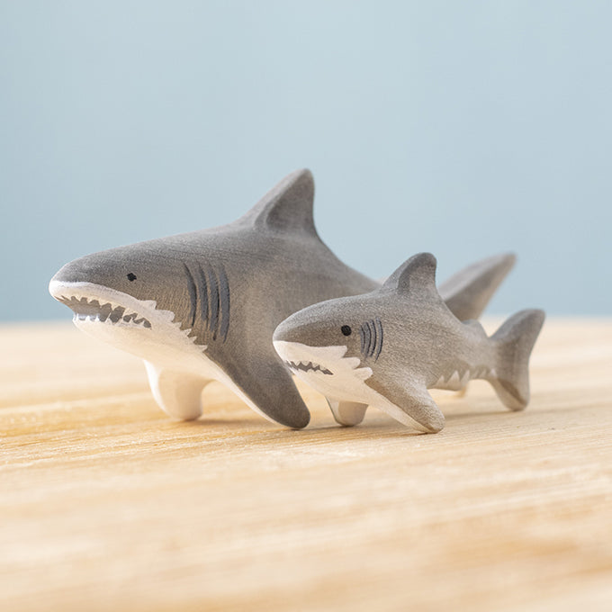 Mooie handgemaakte en handbeschilderde Haaien set van Bumbu Toys.