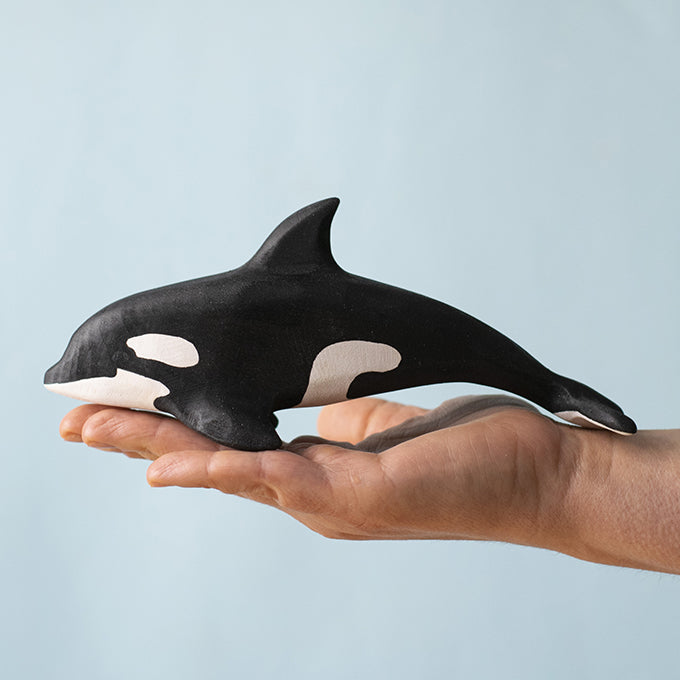 Mooie handgemaakte en handbeschilderde Orka van Bumbu Toys.