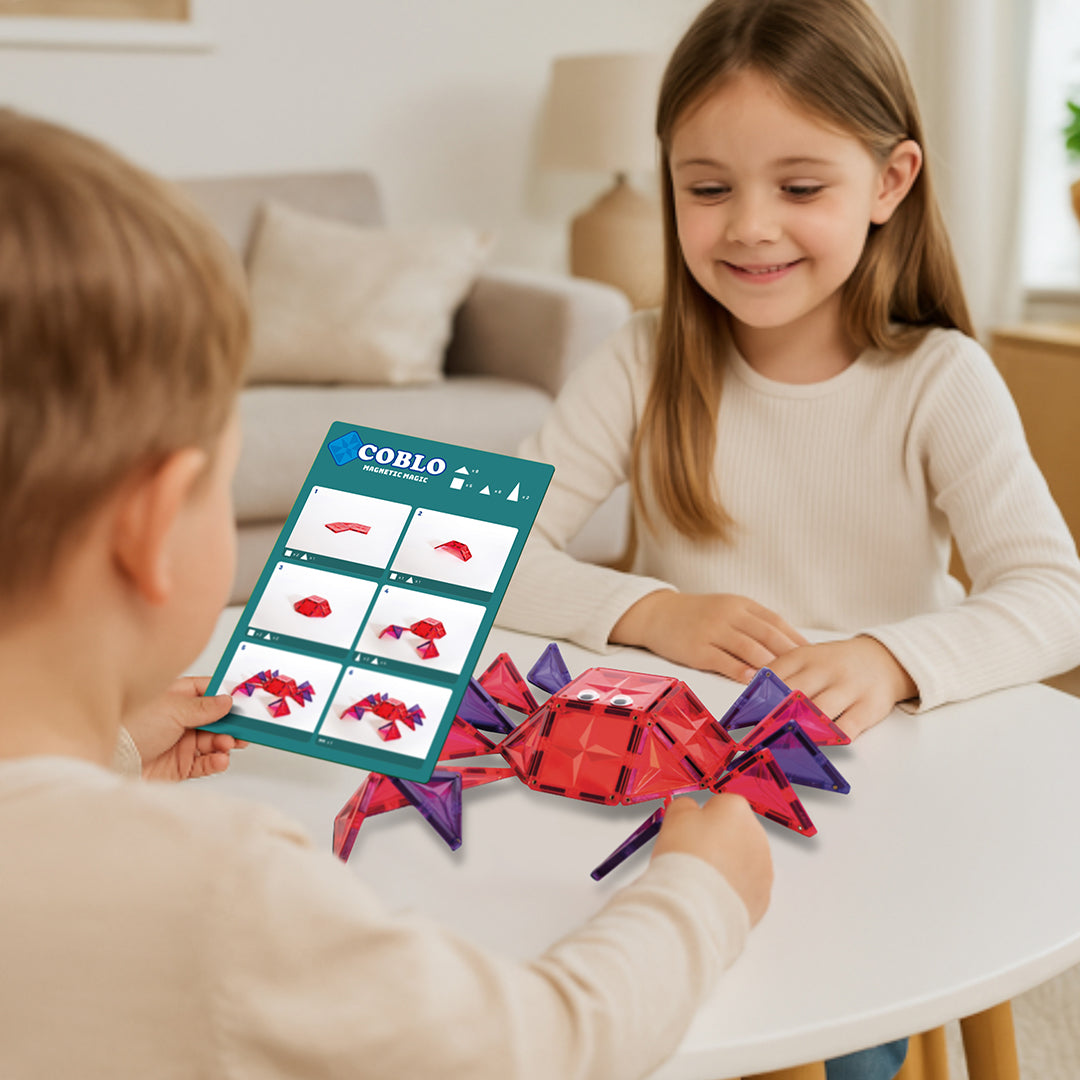 Coblo magnetisch speelgoed bestaat uit mooi gekleurde transparante tegels met magnetische randen. Door ze aan elkaar te klikken maak je de meest fantastische vormen en constructie's. Kleine kinderen vanaf 3 jaar kunnen zonder hulp al eenvoudige bouwwerk maken. Worden ze ouder dan kunnen ze hun fantasie er op een nieuwe manier op los laten. Een simpel 2D Coblo-huis gebouwd door een jong kind verandert dan bijvoorbeeld in een complex 3D Coblo-kasteel met meer details.