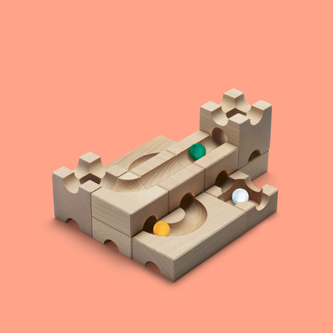 De Cuboro knikkerbanen worden gemaakt van zwitsers beukenhout en zijn perfect afgewerkt. Met de bijzondere blokken met gaten laat je knikkers verdwijnen waarna ze op een andere plek ineens weer tevoorschijn komen. Samen met de andere blokken, rails en bochten kun je eindeloos veel verschillende en uitdagende knikkerbanen maken.
