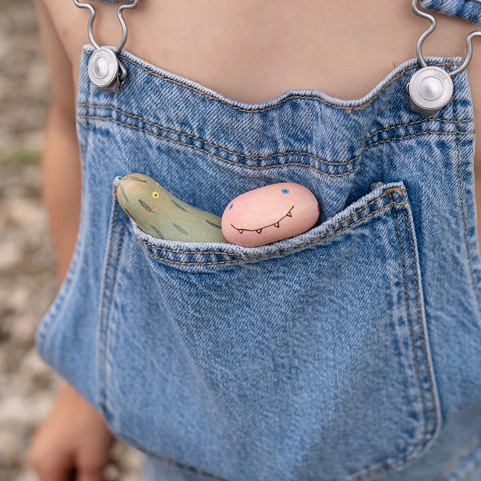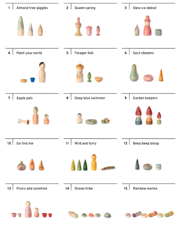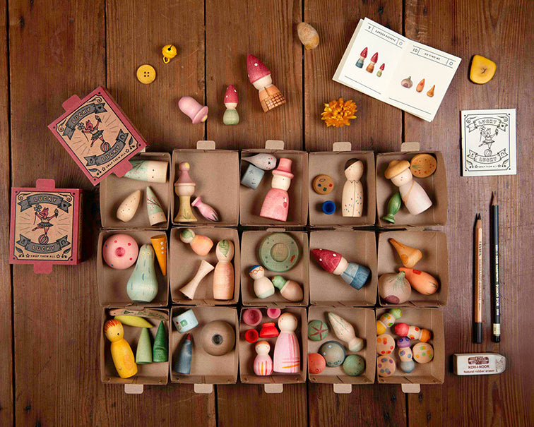Het speelgoed van Grapat bestaat uit losse houten onderdelen die allemaal met elkaar te combineren zijn. Het is speelgoed zonder gebruiksaanwijzing of andere invulling waardoor er ruimte blijft voor de eigen fantasie. Dit nodigt kinderen uit om zelf hun eigen spel te maken en hun eigen wereld te creëren.