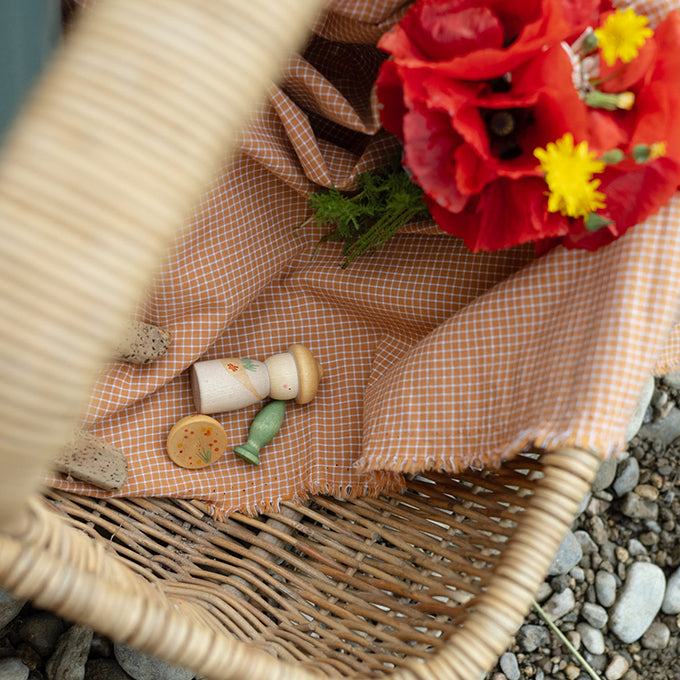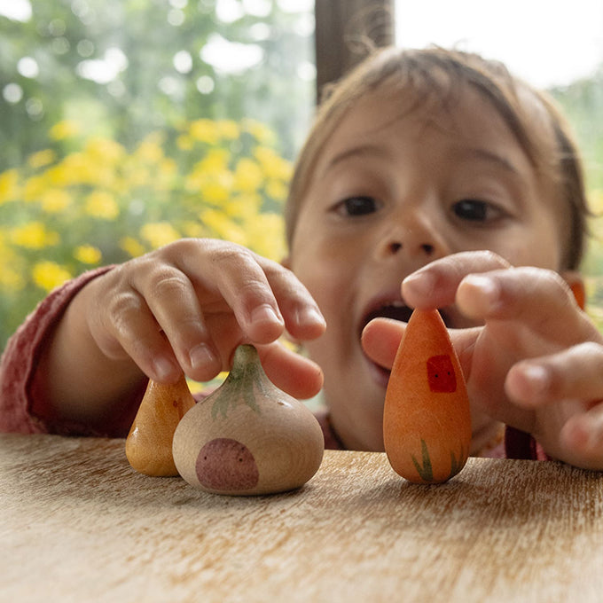 Grapat speelgoed wordt gemaakt van duurzaam beuken- en berkenhout. Daarna wordt het gebeitst met natuurlijke verfstoffen en afgewerkt met plantaardige oliën wat het 100% veilig maakt voor kinderen en milieu. Doordat het hout alleen gebeitst is en niet gelakt behoudt het zijn natuurlijke textuur.