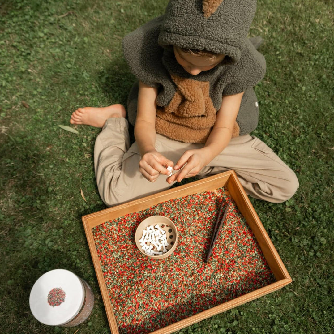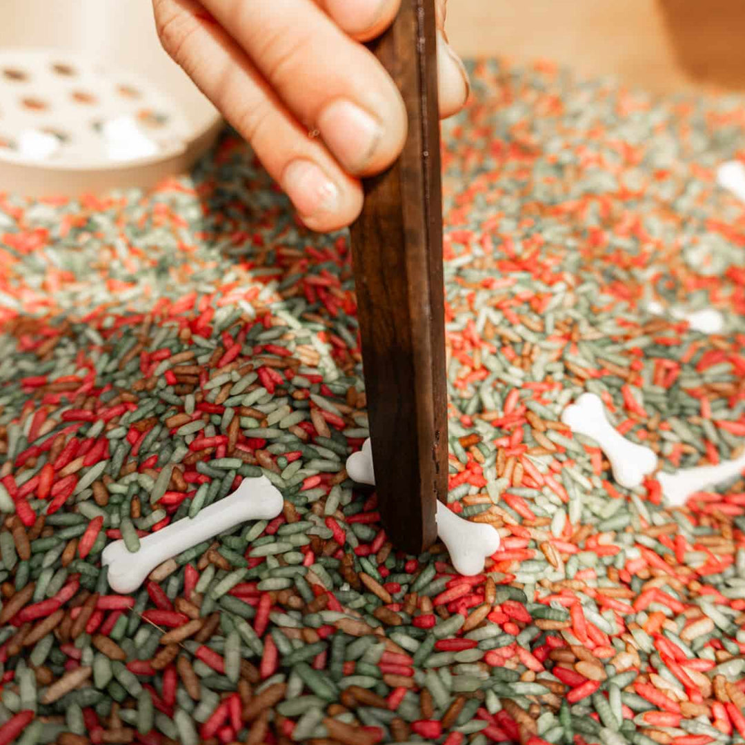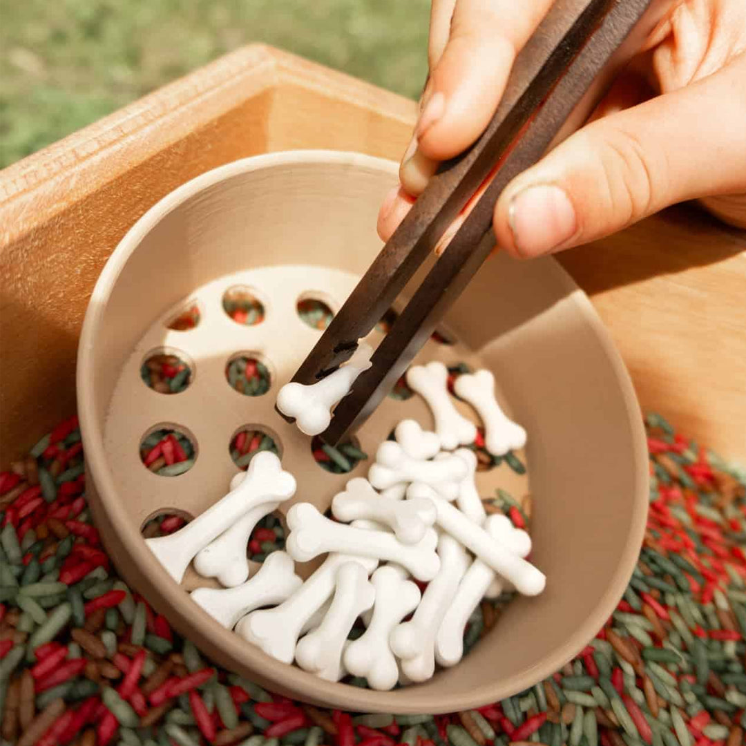Leuke mini botjes van Grennn. Combineer de botjes met de Dino uitstekers of speelrijst. Sorteer, zeef of verstop ze onder het magic sand of speelrijst van Grennn.