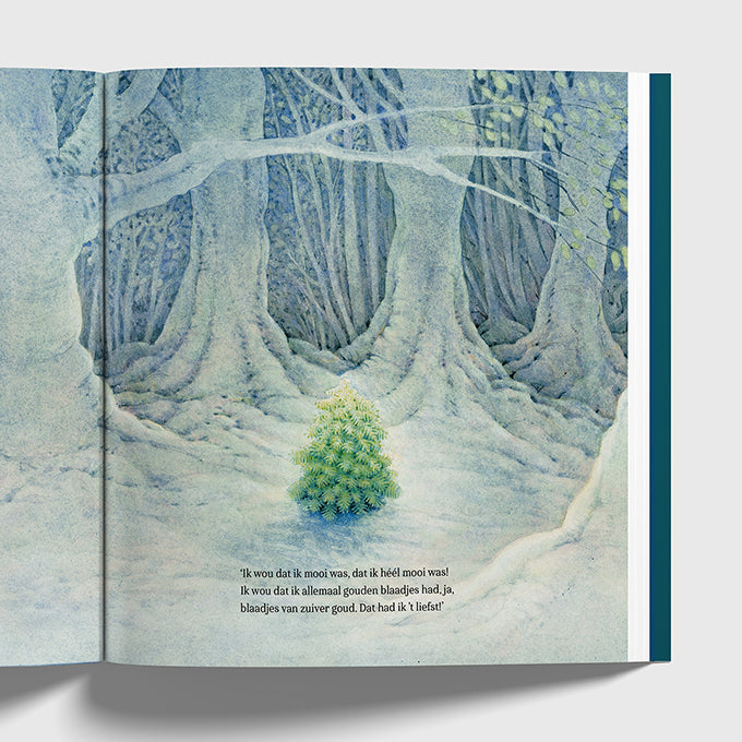 Het kleine boompje is niet gelukkig, want het heeft geen zachte groene blaadjes, maar harde, stekelige naaldjes. En hij wil graag net zo mooi zijn als de andere bomen. Met Kerstmis gaat ten slotte zijn wens in vervulling, maar anders dan hij had gedacht... Een ontroerend kerstverhaal naar een gedicht van Friedrich Rückert.