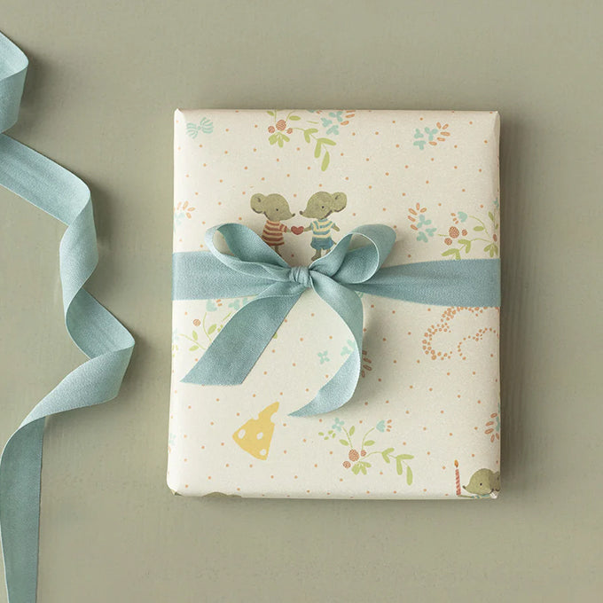 Superleuk cadeaupapier van Maileg met muisjes erop, geschikt voor elke gelegenheid.