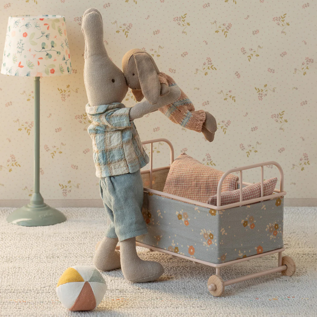 Maileg konijntje, Bunny, Micro - Brown - Dusty rose knitted suit, 12 cm