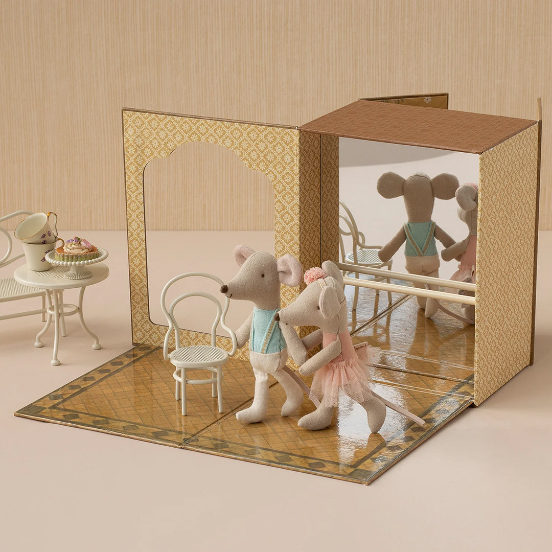 Deze lieve ballet muisjes hebben hun eigen dansstudio! Na het dansen kruipen ze in het knusse stapelbed met beddengoed aan de andere zijde van de studio. De set is inclusief de 2 ballet muizen (formaat kleine broer en zus).