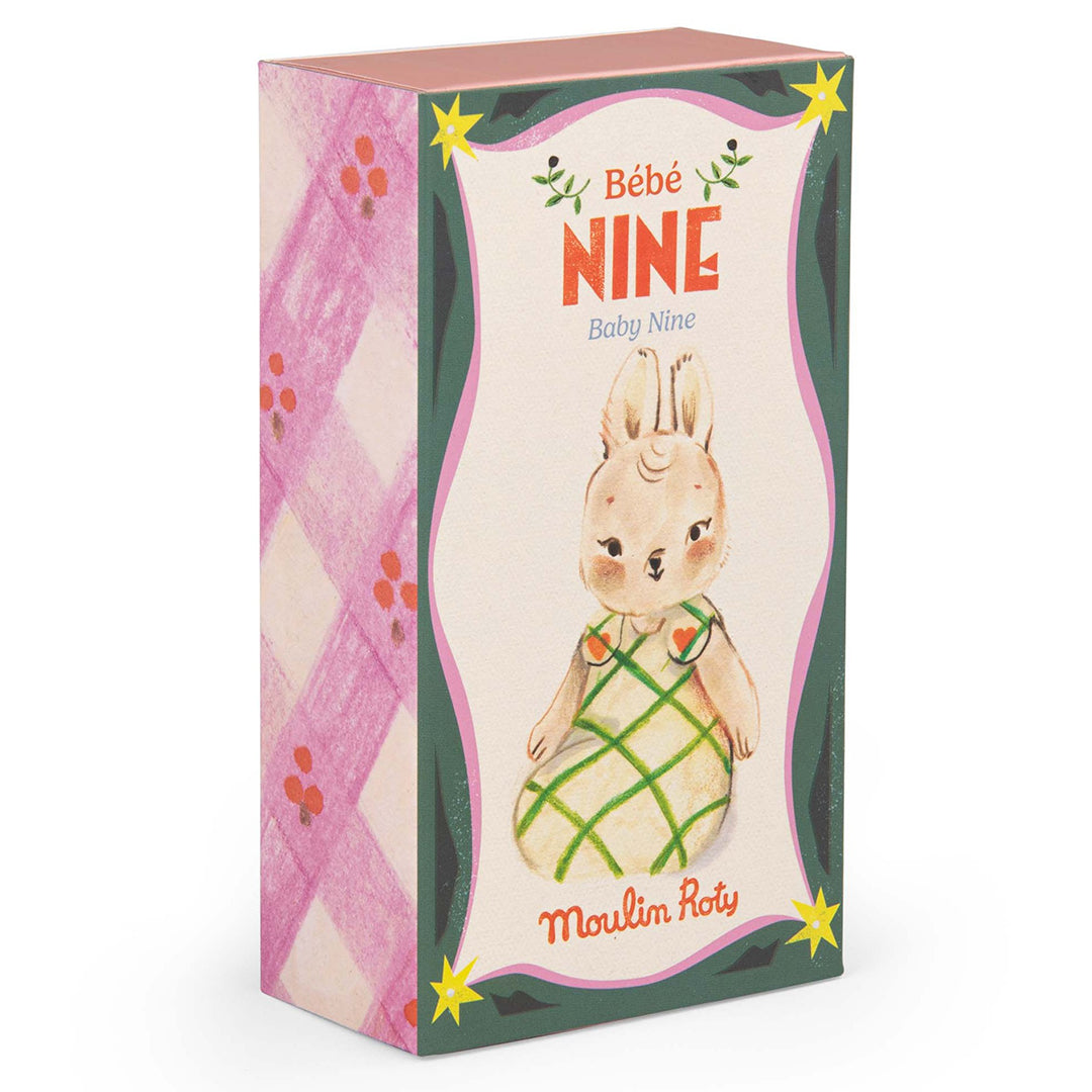 Maak kennis met Baby Nine, een lief knuffel konijntje uit de Les Minouchkas-collectie ontworpen door de Franse illustratrice Lucille Michieli. De knuffel is gemaakt van zachte velours en heeft een schattig geruit slaapzaje aan. het konijntje is verpakt in een prachtig geillustreerd geschenkdoosje.