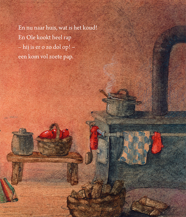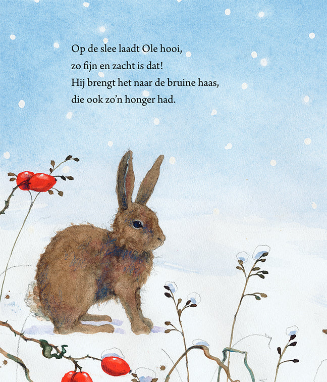 Het is winter in het bos en Ole Langbaard komt tevoorschijn. Hij stapt door de sneeuw om de dieren eten te geven. Een kleine ree, een muis en een haas, ze krijgen allemaal wat lekkers van deze lieve oude kabouter. En als iedereen wat gehad heeft, keert Ole weer terug naar zijn gezellige huisje om uit te rusten van de lange dag. Een nieuw en toch tijdloos kabouterverhaal om samen met kleine kinderen te lezen. Geniet samen van dit prachtige winterverhaal gedrukt op stevig karton.