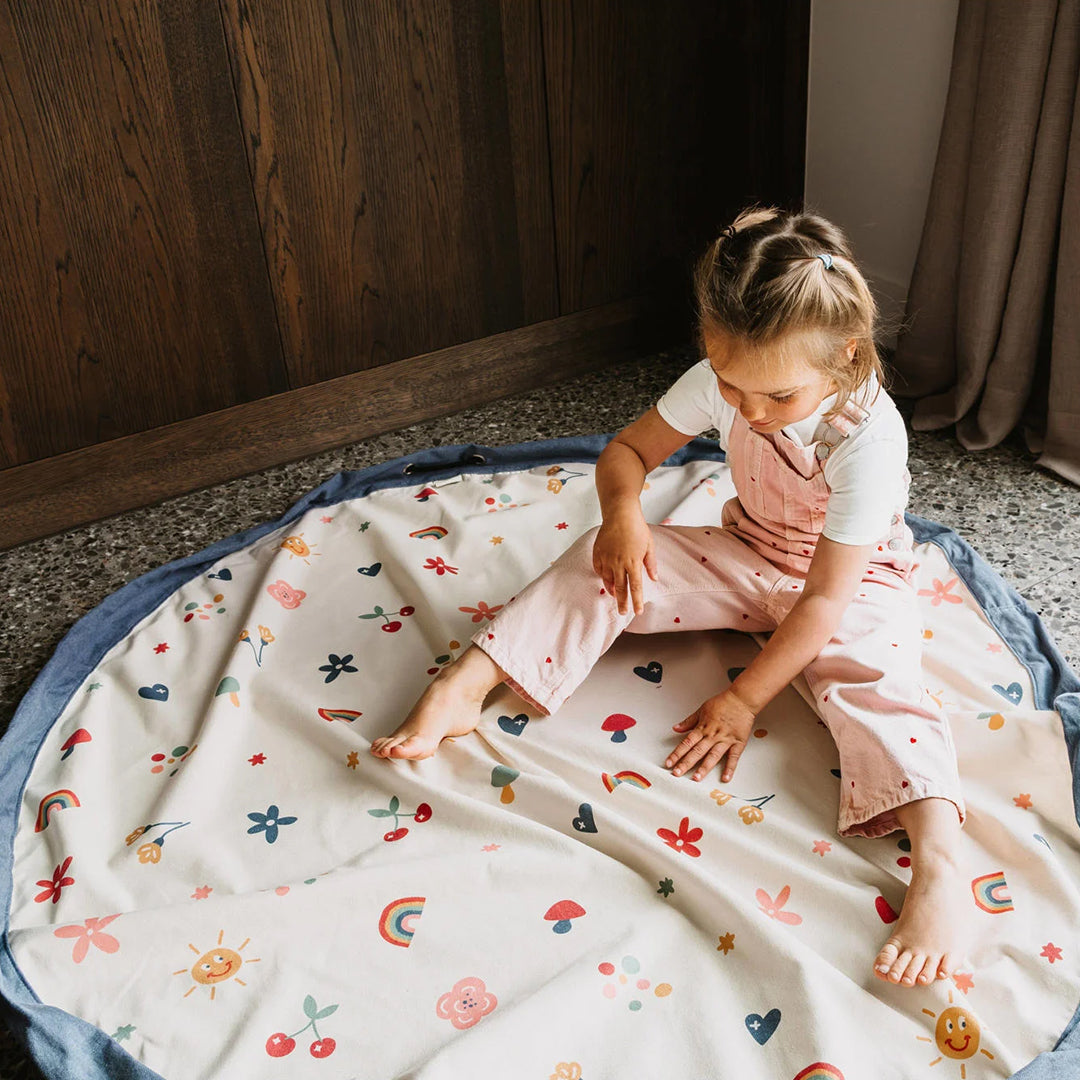 Slimme opbergzak die ook dienst doet als speelkleed. In een handomdraai verandert het speelkleed in een opbergzak en alles is weer opgeruimd! Ideaal voor klein speelgoed zoals lego, houten blokken en autotjes.