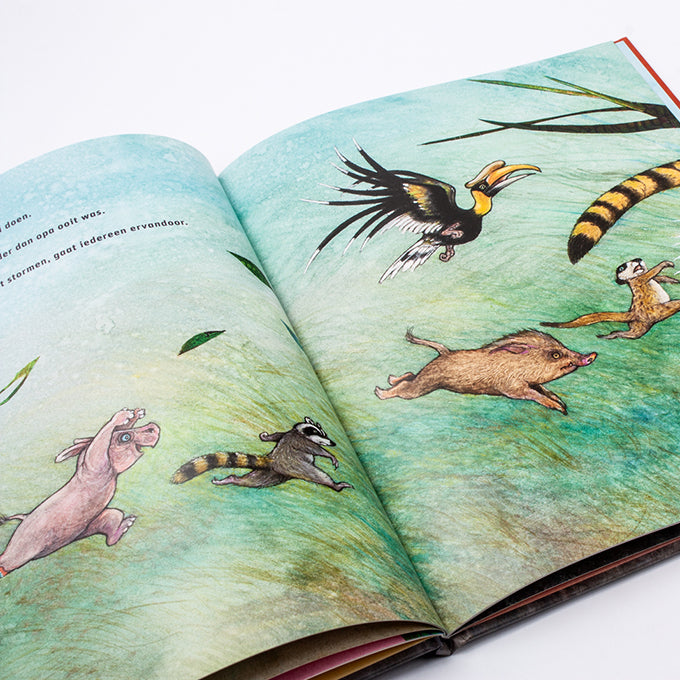 Vroeger was opa een hele wilde neushoorn. En hij was sterk, reuze sterk. Hij kon wel honderd boomstammen tegelijk optillen. Maar nu is opa oud. Het liefst ligt hij de hele dag wat in de schaduw te dommelen. Vandaag past hij op Rinus. En die wil vooral spelen en ravotten!