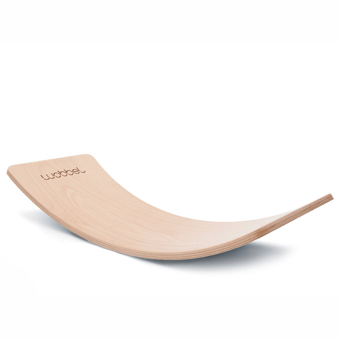 De Wobbel is vervaardigd uit zorgvuldig gestapelde en geperste lagen beukenhout en kent een unieke kromming. De Wobbel is door zijn vorm en uiterlijk het enige speelgoed dat u niet hoeft op te ruimen. Hij staat prachtig in iedere woonkamer. De Wobbel is bedoeld voor binnen maar kan indien zorgvuldig gebruikt ook mee naar buiten.