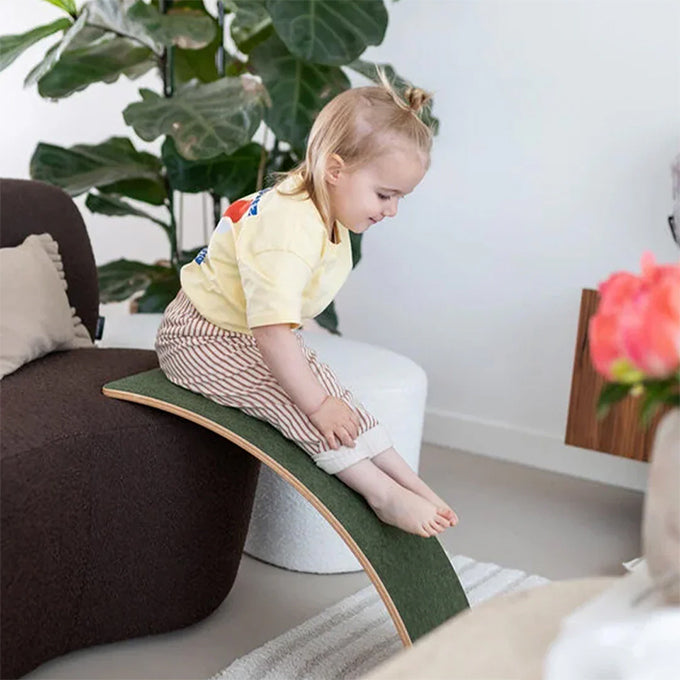 De Wobbel stimuleert balans en evenwicht en ondersteunt op een speelse manier het lichaamsbewustzijn.